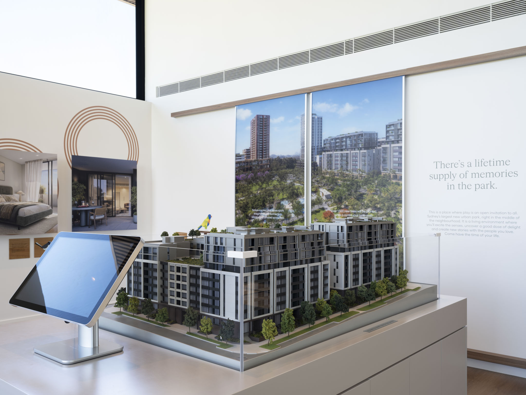 These gabion walls form a cocoon-like envelope, designed to be dismantled and reused, reinforcing principles of circular design. Generous windows break through the solidity of the façade, framing views of the evolving master plan and future parklands. A central internal garden forms the building’s spatial anchor, offering a moment of quiet reflection while also organising circulation—mirroring the role of Central Park within Melrose Park. Operable walls and strong landscape connections allow nature to permeate the interior, blurring boundaries between indoors and out, as a clear intention of future living at Melrose Park. More than a showroom, the structure serves as a living demonstration of regenerative, adaptable design—light in footprint, respectful of place, and intended to one day disappear, making way for the next chapter in the site’s transformation.